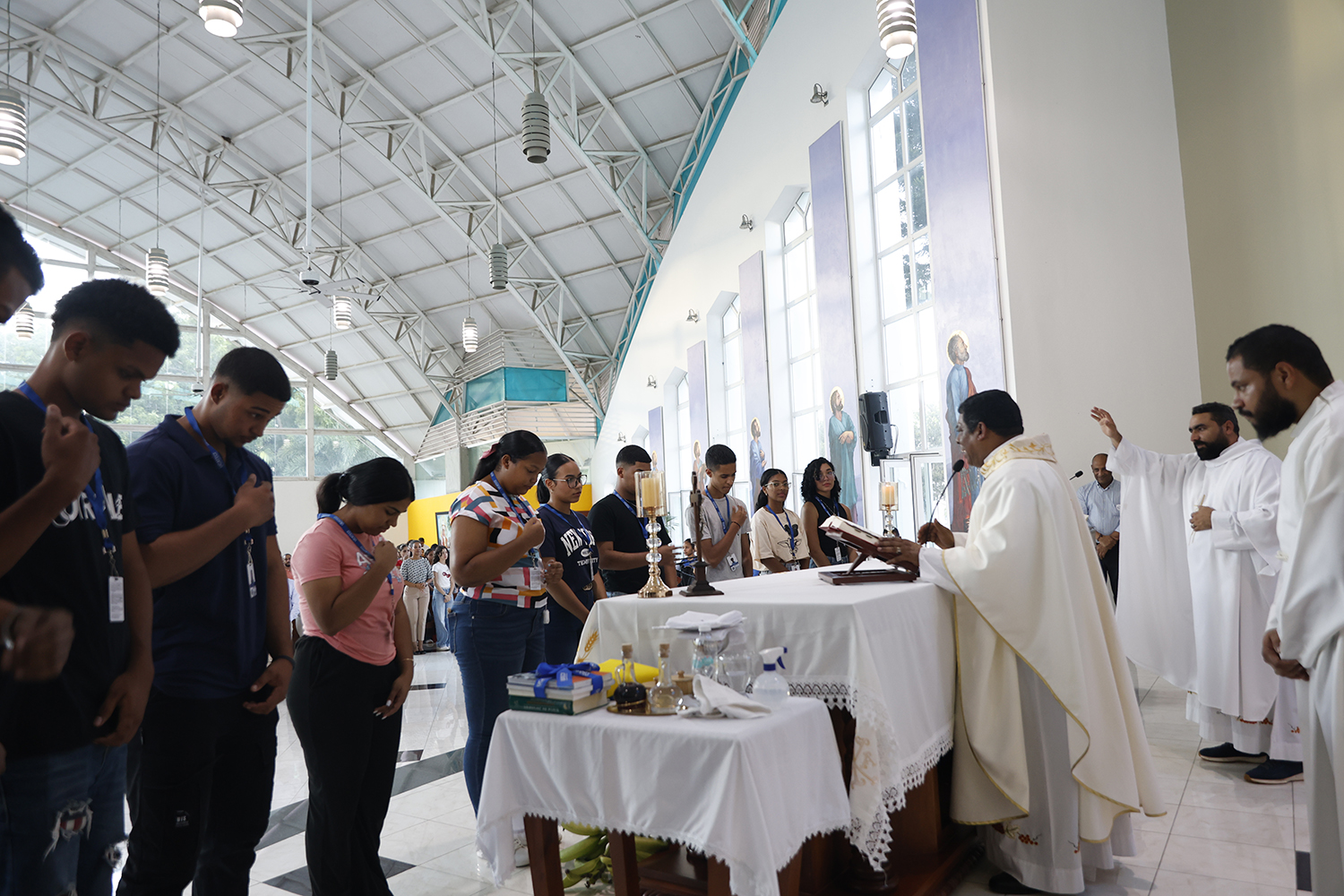 La ceremonia fue presidida por el Rvdo. P. Dr. Francisco Antonio Jiménez Rosario, vicerrector ejecutivo, y concelebrada por el Rvdo. P. César Peralta, director de la Pastoral Universitaria, y el acólito César Canela, decano de estudiantes. Durante la homilía, el vicerrector enfatizó la importancia de iniciar este período con fe, compromiso y dedicación: “Comenzar este nuevo ciclo nos invita a crecer no solo académicamente, sino también a fortalecer nuestra formación humana y espiritual. Cada estudiante, docente y personal administrativo, es parte de esta gran familia universitaria que construye conocimiento y valores en nuestra región”, enfatizó Jiménez.
