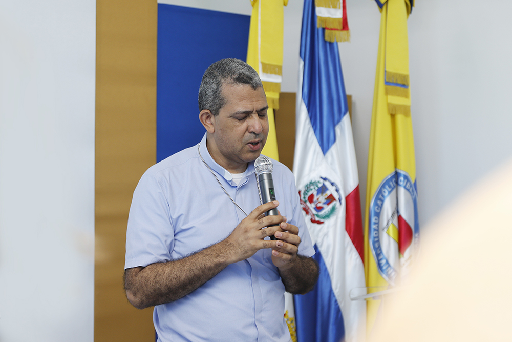 S. E. R. Mons. Carlos Tomás Morel Diplán, obispo de la diócesis, Gran Canciller, presidente de la Junta de Directores y rector de la institución, colocó la jornada en las manos del Señor. En su intervención, el prelado católico dio las palabras de acogida y afirmó que el encuentro fue una iniciativa de la junta para que la academia escuchara a quienes guían y acompañan la vida de fe y servicio en las parroquias y comunidades.